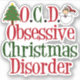 OCD. Obsessive Christmas Disorder. A funny Christmas sticker with a cute christmas tree and Santa Claus to decorate the words.