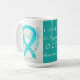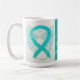 Obsessive-Compulsive Disorder (OCD) uses a teal awareness ribbon to show support for its awareness. This custom mug features teal awareness ribbon guardian angel art paintings with the message "I Hope and Support Obsessive-Compulsive Disorder Awareness!" The custom teal awareness guardian angel ribbon art picture coffee cups or mugs can be customized with personalized messages to make great cause mugs for awareness fundraisers, awareness cup gifts, or other special events or cause support occasions. Make your own customized words for a personal message of hope and support to share!