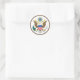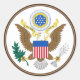 Classic round sticker featuring the obverse of the Great Seal of the United States with the majestic bald eagle, shield of stars and stripes, olive branch, arrows, and the motto "E Pluribus Unum." Printed in vibrant full color on durable glossy vinyl, perfect for laptops, water bottles, notebooks, car bumpers, envelopes, or patriotic crafts. Ideal for history enthusiasts, veterans, government workers, educators, or anyone proud of American heritage. Add official symbolism and timeless national pride to your items with this detailed, high-quality seal design.