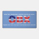 OBX in painted U.S.flag colors on a sky blue background. Outer Banks towns are listed in white.