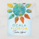 Bright, colorful Ocala Florida design that is 100% Sunshine approved. Warm colors of red, orange, turquoise and aqua in a watercolor style pattern on a pretty blue shaded background.