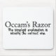 Occam's Razor is a scientific problem solving principle that simply means that the simplest explanation is usually the correct one. Among competing hypotheses, the one with the fewest assumptions should be selected. This would be a nice scientist gift for someone who likes the laws and rules of science.