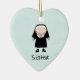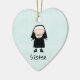 Professional woman in religious order with nun's habit on light blue background. Text on front reads Sister. Back can be customized with your own text. From Ornament Central.