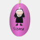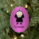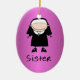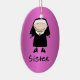 Professional woman in religious order with nun's habit on gleaming rosy raspberry purple background. Text on front reads Sister. Personalize the date or other saying on the back. A nice gift for Catholic school teachers. From Ornament Central.