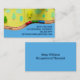 Cute children's occupational therapist or play therapy business cards for someone who works with kids by using toys. This child counselor card is colorful with bright blue and yellow surrounding the fun toy train used to help with motor skills.