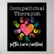 The occupational therapist design. This funny occupational therapist design reads occupational therapist putting the fun in functional. Great if you're working in healthcare and like taking care of patients to help them to recover.