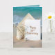A blank card is elegantly set against a beach backdrop, accompanied by delicate white gypsophila flowers, a starfish, and a sand dollar for a 35th wedding anniversary.