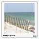 Looking past the sand dune and beach fence to a sandy beach and the Atlantic Ocean