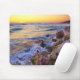 Mouse pad shown with a photo print of a beautiful rocky beach sunset scene. Customize this item or buy as is. Stock Image