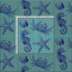 This is an ocean beach pattern featuring art in deep navy blue of a seahorse, starfish, sea shell and a crab. You can customize the sea green background color.