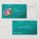 Hawaiian style coconut with straw, tropical leaves and hibiscus flowers composition on a water like blue teal background making a retro bold colorful beach bar business card / happy hour and social media advertising card. ---- Fill in your details on front and back side!