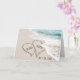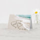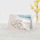 Beach hearts in the sand with frothy ocean surf and names for the newlyweds.