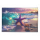 Beautiful ocean beach with violet starfish design during sunset... Let's Color Your World !!