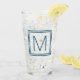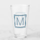 This American style pink glass features a modern double framed monogram in deep ocean blue on each side. Personalize with your choice of initials.