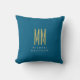 Ocean Blue Gold Monogram Initial Letters Name Throw Pillow