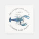 Personalized Blue Lobster themed food paper cocktail napkins for your next Lobster Bake Party or seafood event. It features a watercolor styled illustration of a blue lobster. Surrounding this are spots for your unique event information.