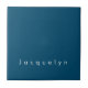 Ocean Blue Plain Elegant Modern Minimalist Name Ceramic Tile