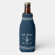 Upgrade your boat beverages with these awesome personalized bottle coolers in bright navy blue. Design features your boat name, ship's registry, and year established in white lettering, accented with an anchor illustration and rope stripe detailing at the top and bottom.