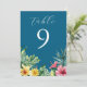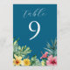 Ocean Blue Tropical Flowers Greenery Table Number