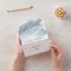 A swirling wedding calligraphy script against an ocean-blue watercolor backdrop makes an outstanding presentation for any modern spring or summer destination wedding venue. Personalize all of your wedding details in the guide above to make it your own.