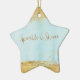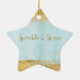 Ocean Blue Watercolor Gold Sparkle Ceramic Ornament