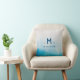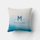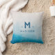 Ocean blue watercolors throw pillow with your customized family name and initial.