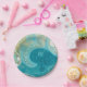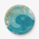 Ocean Blue Waves and Sandy Brown Fluid Art Paper Plates
