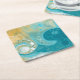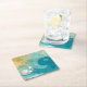 Ocean Blue Waves and Sandy Brown Fluid Art Square Paper Coaster