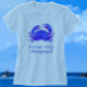 Ocean City, Maryland t-shirt with a vibrant crab sporting beautiful blue hues and a touch of pink. Show off your love for OC with this eye-catching shirt.