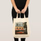 The printing came out very well, better than I had anticipated. The natural color fabric is sturdy with strong seams and comfortable handles. This tote fits easily over my shoulder. As it is filled, the bottom flattens out--very cool! I would buy this product again. This grocery tote holds a lot of groceries! The image quality was very good. The colors were a little darker than I had expected. The darkness may have been due to printing on a natural color fabric rather than on white. The cat design is attractively centered on the tote. The spirit of the design is very lively, just as it appears on the Zazzle website.