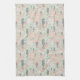 Pastel colored kitchen towel with an underwater garden of coral, shells and sea horses. Light colors of gray, peach, cream, and green.