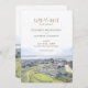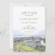 This elegant save-the-date card features a beautiful watercolor illustration of the iconic Ocean House in Rhode Island, overlooking the stunning New England coastline. The artwork captures the serene beauty of the ocean view and the classic architecture of the luxurious resort, with soft hues of sky blue, sandy beige, and lush green adding to the coastal charm. Ideal for a romantic seaside wedding, this card sets the tone for an unforgettable event filled with New England elegance.