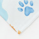 This seamless pattern blanket features blue and brown paw prints alongside whimsical ocean elements like seahorses, seashells, and starfish. Set against a soft, cloud-like watercolor background in fluid blue tones, the design blends coastal charm with pet-loving warmth. Perfect for beach-themed pet lovers, summer vibes, or playful nautical aesthetics with a gentle watercolor touch.