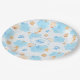 This seamless pattern paper plate features blue and brown paw prints alongside whimsical ocean elements like seahorses, seashells, and starfish. Set against a soft, cloud-like watercolor background in fluid blue tones, the design blends coastal charm with pet-loving warmth. Perfect for beach-themed pet lovers, summer vibes, or playful nautical aesthetics with a gentle watercolor touch.
