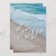Celebrate your love by the serene shores with our Ocean Love: Elegant Beach Wedding Save The Date cards. The front features a delicate and heartfelt "Save the Date" phrase in exquisite heart vector calligraphy, symbolizing the love that binds you. Your names and the significant date are elegantly displayed in white, adding a personal touch to these enchanting invitations. The back side continues the magic with custom text save the date detail against a backdrop of the seashore under the clear blue sky.
