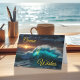 This greeting card features a striking image of an ocean wave illuminated by a dramatic sunset, evoking feelings of awe, strength, and beauty.