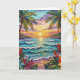 Pretty tropical coastal birthday card. A cute coastal themed poem with birthday wishes inside can be personalized or left alone.. Gorgeous ai impasto oil painting style illustration of the blue ocean, a sandy beach surrounded by palm trees at sunset. Inside is a cute crab and sea glass.