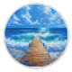 Ceramic door pull/knob with image of a blue ocean and sky with a rustic pier.