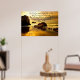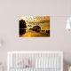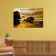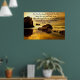 Featuring a breath taking view of a Orange sunset over top of the ocean and the waves hitting the shore of the Ocean And a large rock on the shore with the waves splashing up against it..this is a beautiful photo on this poster with the text saying.