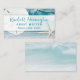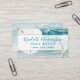 Business cards with ocean water and seashell images. Customize sea blue text in three lines over a white panel. A white sand dollar and sea star / starfish decorate the cards. First line is in script and can be for a personal name or business name. The second line is for service offered or profession. The third line is for contact / location / online website. The design may not fit all business card sizes.