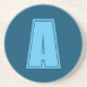 Ocean & Sky Blue Initial Monogram Calligraphy Chic Coaster