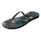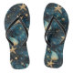 A pair of flip flops with an elegant blue pattern with starfish, representing the ocean.
