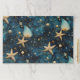 A set of tearaway place mats with an elegant blue pattern with starfish, representing the ocean.
