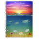 Ocean sunrise, swimming sea turtles, shells and pearls Notebook.