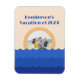 Beautiful elegant magnet with minimalistic scene of ocean and setting sun. Personalize it with a name or text. This simple illustration captures the serene beauty of a sun setting at the ocean. The waves are simple curved lines, starting from the bottom of the illustration and extending upwards towards the horizon line. Different shades of rich blue add to the sea dynamics. The sun is a large circle glowing in a brilliant orange, dipping into ocean. The sun and the ocean waves evoke vintage vibes and create tranquil scene and elegant design.