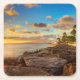 Ocean Sunset Over Rocks And Palm | O'Ahu Square Paper Coaster