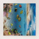 This bright ocean design features an underwater scene with various colorful coral and tropical fish. The sky shows the brilliant colors of a tropical sunset.