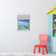 Ocean view, fake window scene, for a windowless bathroom or office wall. Fun, realistic optical illusion scenic poster for an office or study wall.