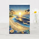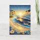 Happy Anniversary card. Ai depiction of an ocean sunset with pretty blue waves, a sandy beach, palm trees and flowers done in a paper quilling 3D effect.