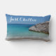Lumbar pillow with ocean view beach. personalized, now reads: Peace & Quiet on one side, and Just Chillin on the other side. Makes a great beach house gift.